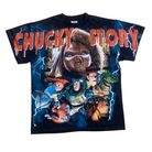 Black Short Sleeve Cotton Tee with Chucky Story print on front and back.
