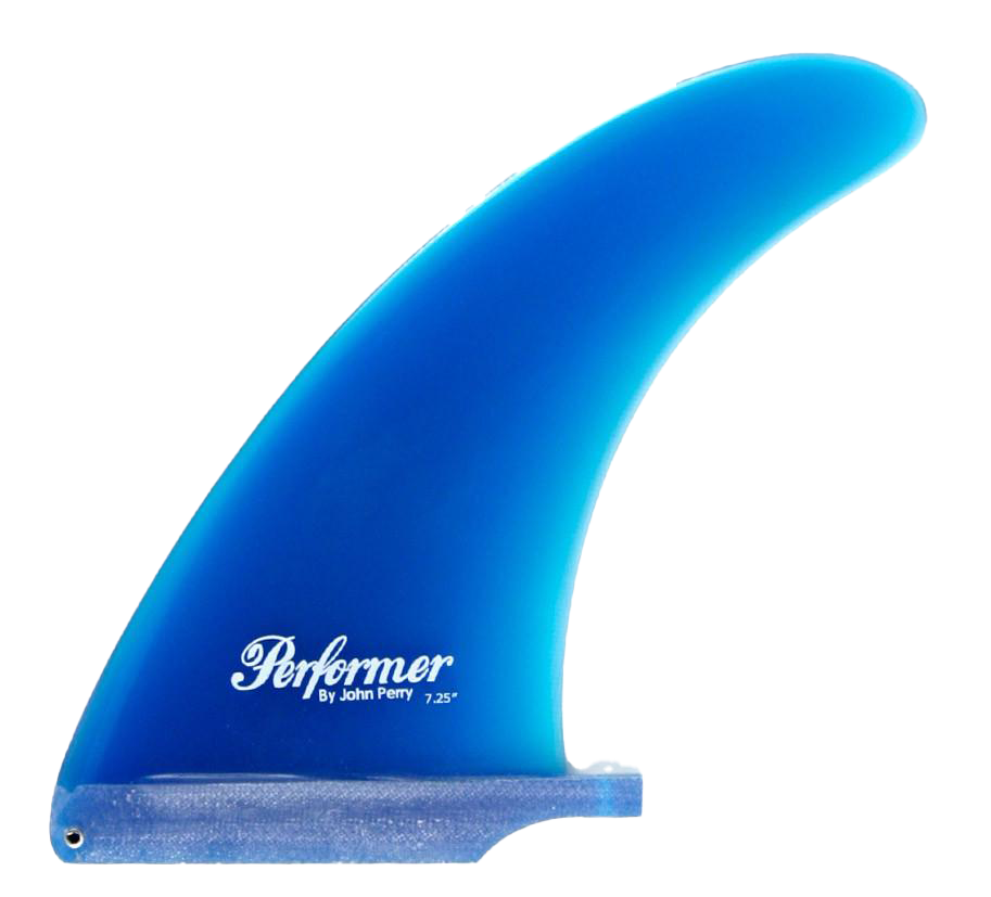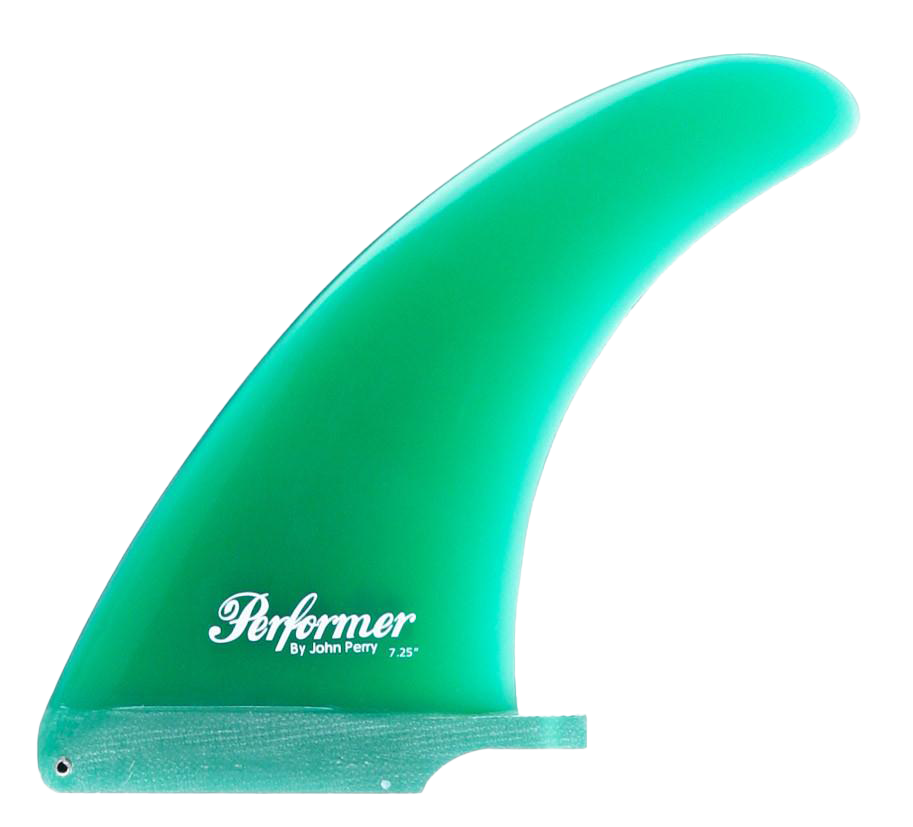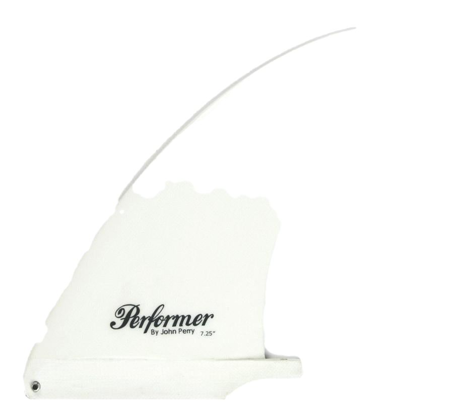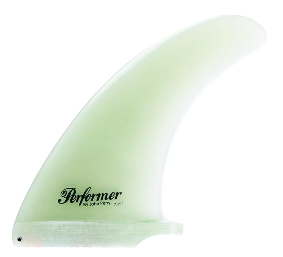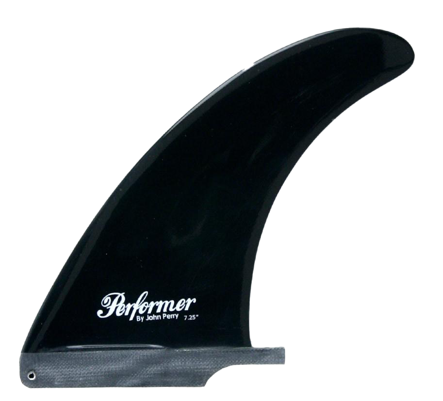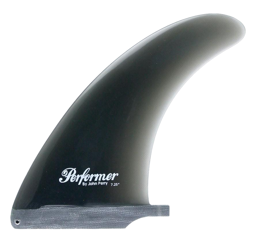 The Performer - Single Fin, Solid Fiberglass. Designed by John Perry, this classic center fin features a well-balanced outline with optimal surface area distribution and minimal flex, yielding a powerful yet extremely smooth ride. A go-to option for high-performance 2+1 longboard setups or as a standalone single fin in larger sizes, conceived from the same R&D that helped pioneer the 2+1 "Threedom" configuration.