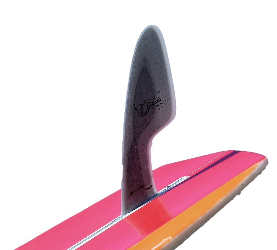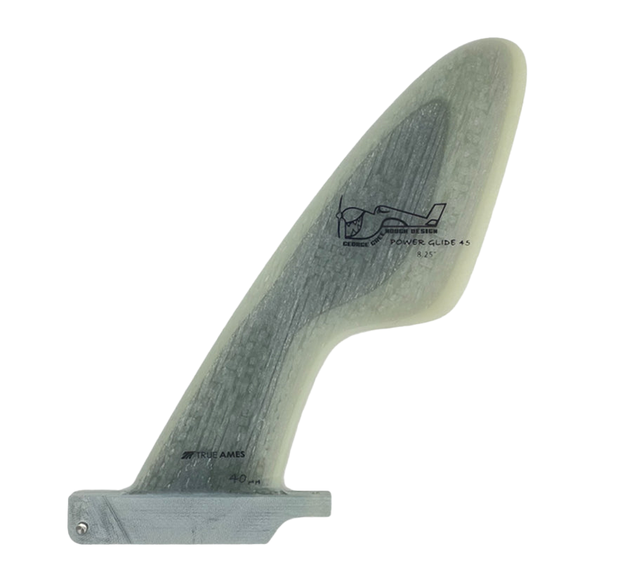 True Ames proudly present the Power Glide 45, the newest design in the continually evolving Greenough collection. This design builds upon many of the same elements found in its predecessor, the Power Blade, yet it has been further refined into a more approachable and user-friendly fin that is ready for a wider range of applications and continued experimentation. In close collaboration with George Greenough, True Ames modified the outline of the Power Blade into what is now the Power Glide 45, which incorporates more rake, more area, more flex, and softer curves. The ‘45’ in the name of this design refers to the rake which appears as if it is approaching a 45° angle (the actual rake is 32°, which is 9° more than its predecessor). The additional rake in this fin allows for a more generoturning radias well as a touch more forgiveness overall. Suitably named the 'Power Glide', this fin will hold its line through larger and smoother arcing turns. In addition to the added rake, this fin also has more overall area than the Power Blade, which will feel a bit more steady and reliable under ythe feet. Lastly, the Power Glide 45 has a greater amount of flex, resulting in a more responsive and adaptable performance. Despite its modifications, the Power Glide 45 remains rooted in the same lineage as the Power Blade; as such, it shares many fundamental similarities. One such core element in its design is that it requires the stiffness and performance integrity of an extremely strong ‘leg’ in order to support the enormoload on the ‘head’. Another key factor in its design is the ability of the ‘head’ to twist, as opposed to only flex, like most all other fins. This produces 'variable-tow,' an attribute which allows the fin to twist back and forth and in turn create propulsion based on the angle and direction of attack. Lastly, meticulomaterial selection has resulted in a unique lay-up combination of high-density epoxy and fiberglass materials that have met the strength requirements, without suffering fatigue and breaking down the fibers. Like the Power Blade, the careful construction of the Power Glide 45 meets three distinct and rigorodemands: stiffness where needed, particular flex characteristics, and the ability to twist. A direct descendant of continued testing and design revisions, the Power Glide 45 is not meant to replace the Power Blade. It was simply created to serve a larger audience and a wider range of board designs through its additional rake, added area, and increased flex. True Ames are stoked to continue to push the boundaries and capabilities of single fin designs alongside Greenough and his continual pursuit to find the perfect blend of minimal drag and increased speed together with hyper-sensitive response and maneuverability. Designed for boards in the mid-sized range Like its predecessor, the Power Blade, it was crafted to rival the high-performance characteristics of the thruster, while preserving the fluidity and style of a classic single fin Relative to the Power Blade, its additional rake, added area, and increased flex make it a bit more adaptable to a larger audience and a wider range of applications Proprietary in-house construction made using a blend of heat-treated and bonded high-strength materials