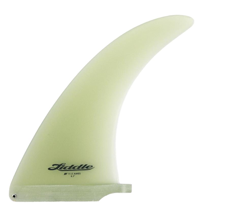 L-Flex (Liddle L-Flex) - Single Fin, Solid Fiberglass. After decades of refinement, Greg Liddle's iconic L-Flex remains one of True Ames' most popular displacement-hull fins, originally designed for his modified hulls developed in the late 1960s. The finely tuned foil and controlled flex pattern produce a fast, flowing feel with excellent projection, and the template has proven effective across a wide spectrum of hull-inspired boards and longboards.