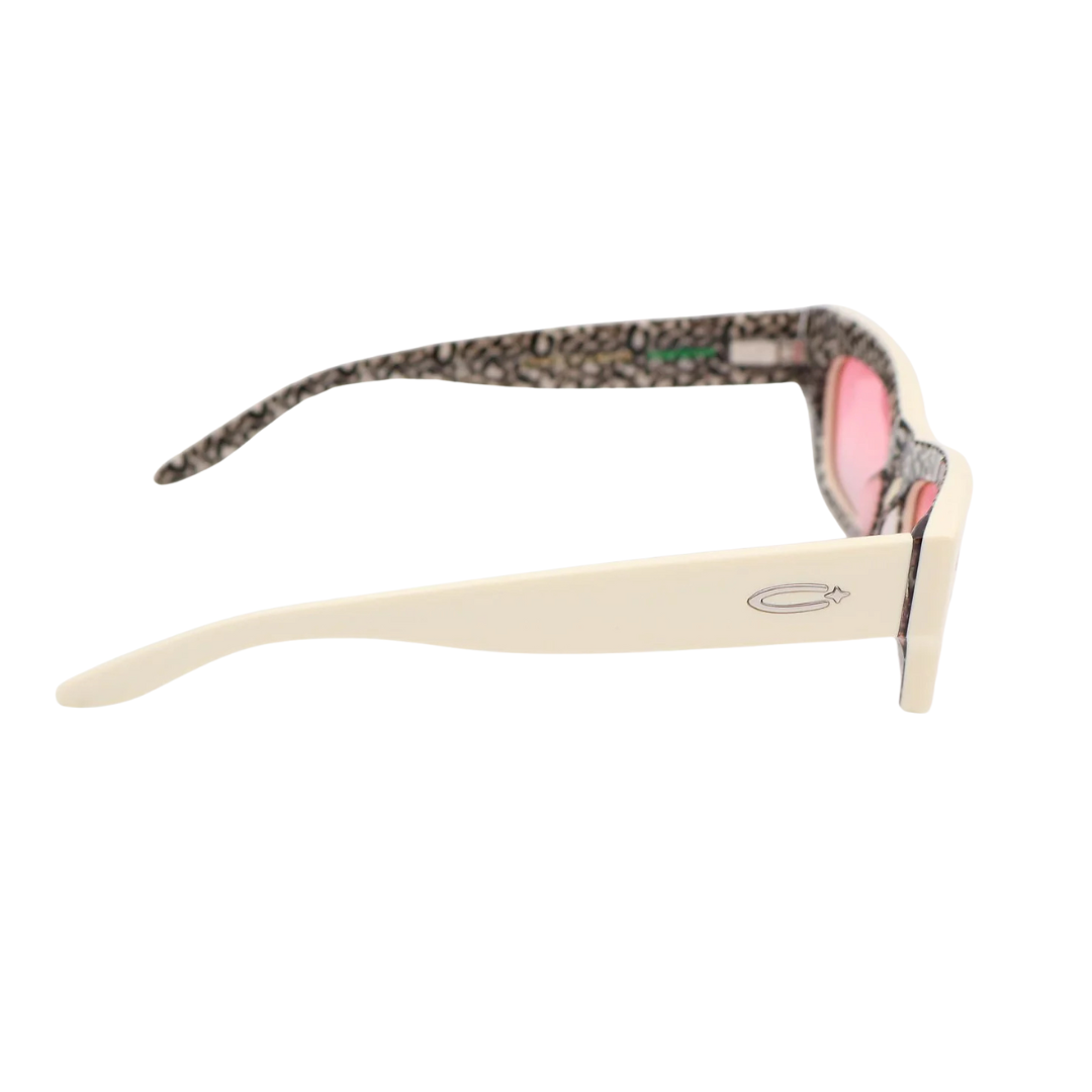 The Glam Rodeo is a square cat-eye silhouette that favors medium sized heads. Spring hinges offer a more accommodating, comfortable fit.