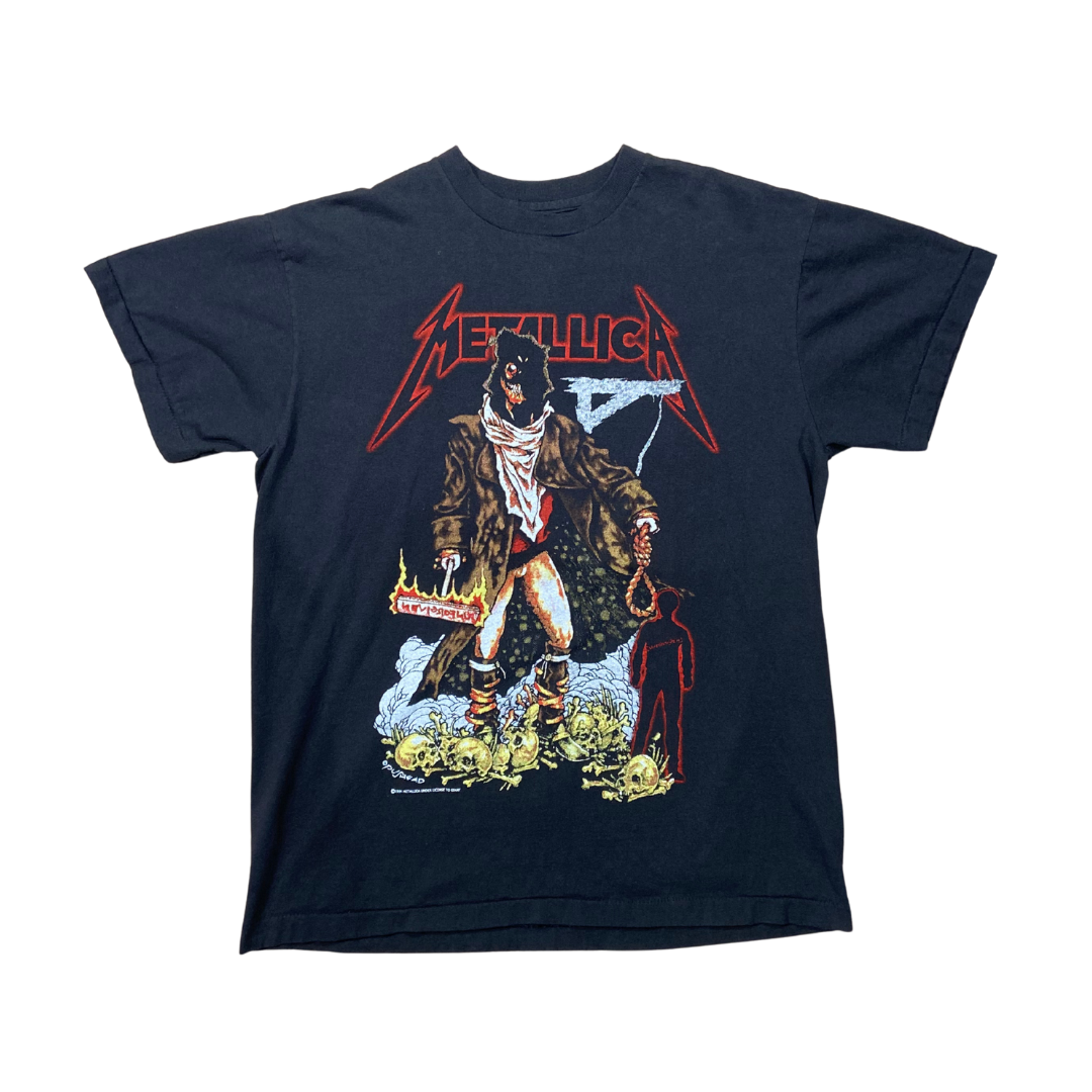 Shop our extensive vintage t-shirt archive, described as "the most unique selection of vintage, overprint, and bootleg t-shirts in the world." This curated selection spans music, movies, anime, and pop culture, featuring pieces from artists and properties ranging from Metallica and Rage Against the Machine to Initial D and Junji Ito anime graphics. The t-shirts represent authentic vintage pieces rather than reproductions, with pricing reflecting their rarity and condition.