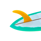 With an outline similar to a pin tail version of Gato Heroi's infamous Death Dagger, the Double Dagger has a narrow, parallel outline with a pointed, pulled in nose and tail. The rail foil starts out in the nose as a 50/50 but quickly transitions into more of a 70/30 down turned rail that holds through the rest of the board through to the tail. The deck is hearty and holds a solid amount of thickness in the middle before doming off towards the rail. Relative to many of the Gato Heroi models, the Double Dagger has a pretty mellow bottom contour with a light rolled bottom that flattens out towards the tail. Super flat, balanced rocker with a beautiful 3/4" cedar stringer with nice woodgrain.