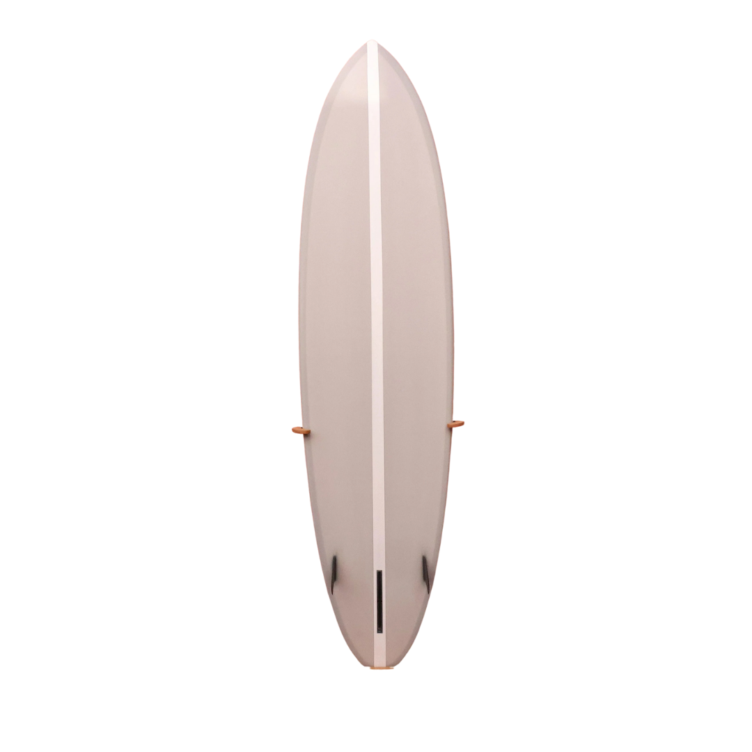 Introducing the Tyler Warren 7'3" Speed Egg, a meticulously designed surfboard tailored for the dynamic waves of Ocean Beach. This exceptional egg-shaped board is engineered for high-speed manoeuvres, ensuring an exhilarating ride through the surf. Featuring a sleek grey finish accentuated by a distinctive white stripe, the board is completed with a sanded gloss for enhanced performance and aesthetic appeal. The versatile 2 + 1 fin setup, including glassed-on side bites, offers optimal stability and responsiveness in varying conditions.