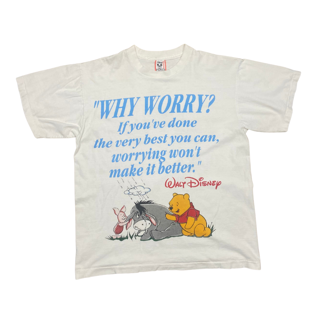 Front features Pooh, Piglet, and Eeyore with quote: "WHY WORRY? If you've done the very best you can, worrying won't make it better." - Walt Disney